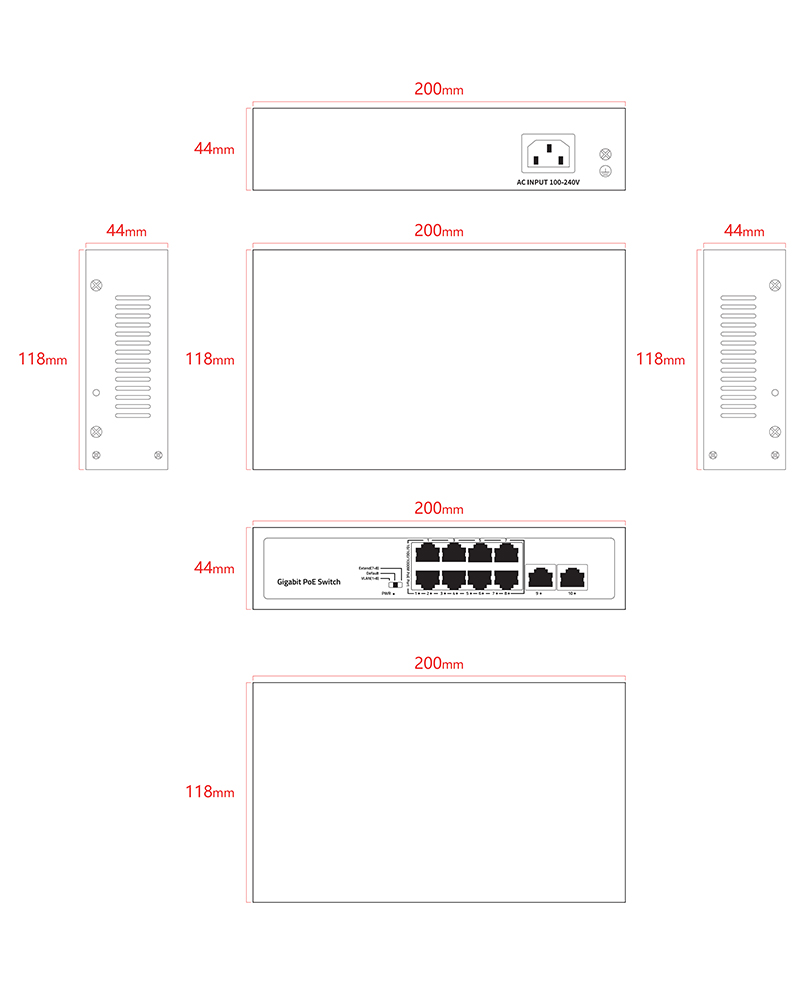 8*1G PoE ports 2*1G uplink RJ45 ports |