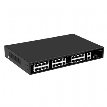 10/100/1000M intelligent PoE switch, with 24*10/100M PoE ports + 2*Gigabit uplink RJ45 ports + 1*Gigabit