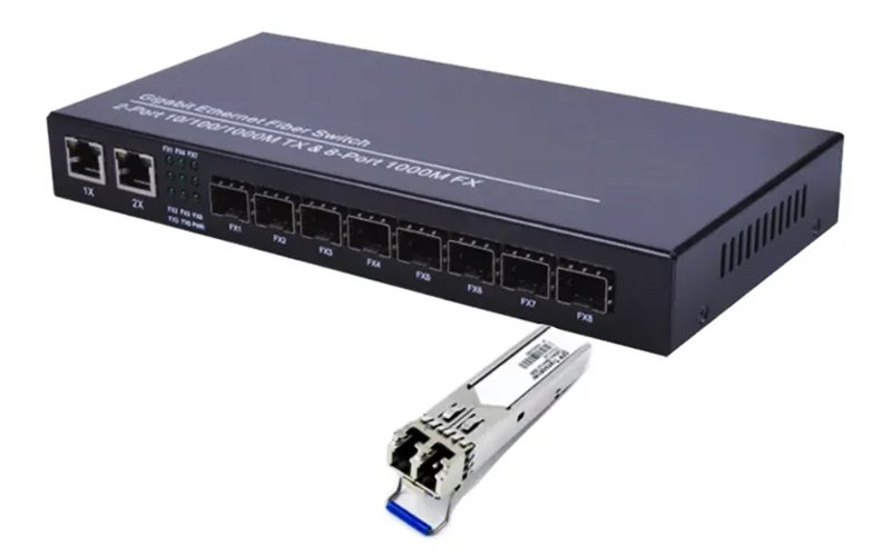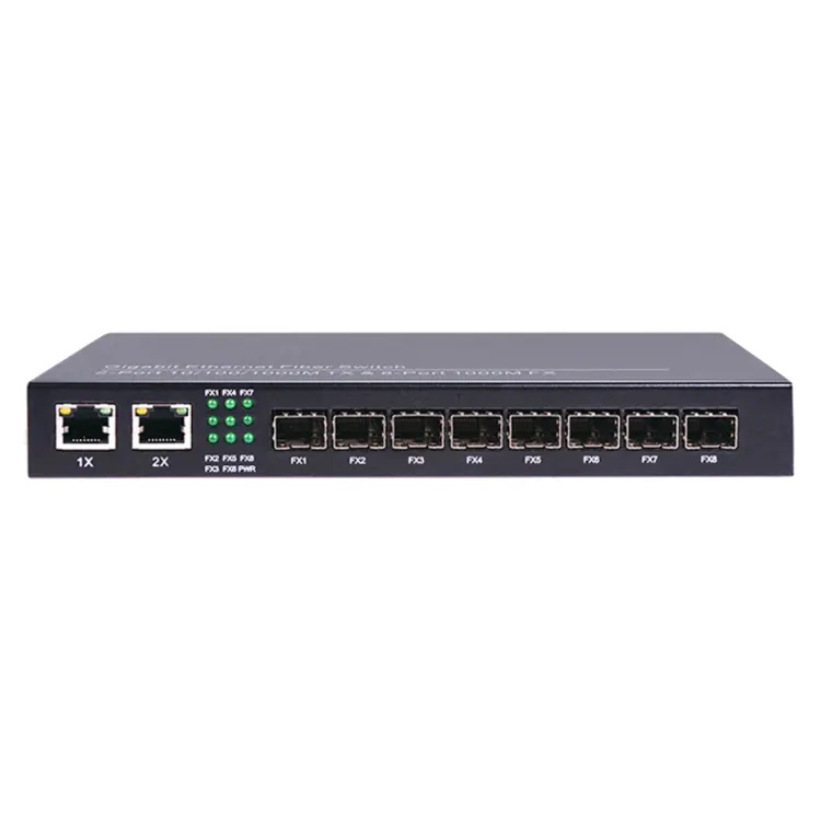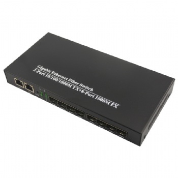 SunSoont SST-8F2ET-SFP SFP Gigabit fiber optic switch with 8 SFP slot and 2 RJ45 uplink ports , IEEE802.3z, AB 1000Mbps10 port Gigabit Ethernet Switches supports two types media for network connection and switching such as