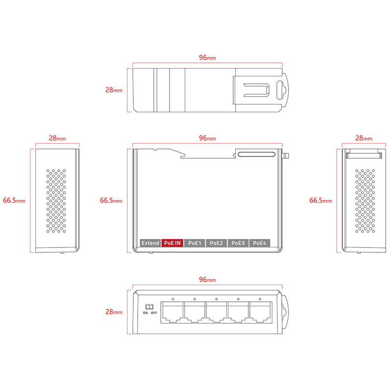 1*100Mbps PoE in port 4*100Mbps PoE out ports |