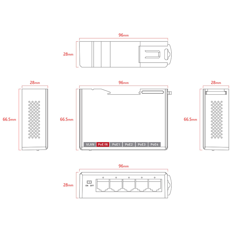 1*1Gbps PoE in port 4*1Gbps PoE out ports |
