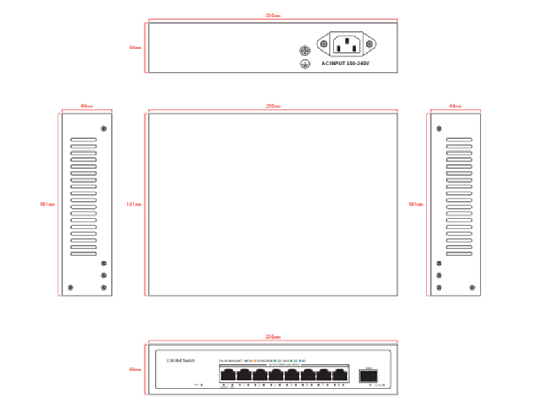 8*100/1000/2500M POE port 1*10G SFP port |