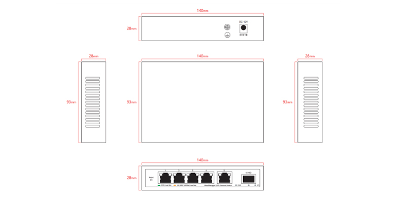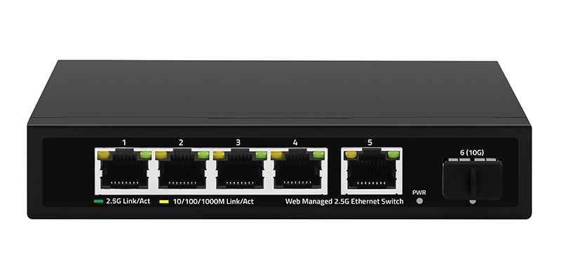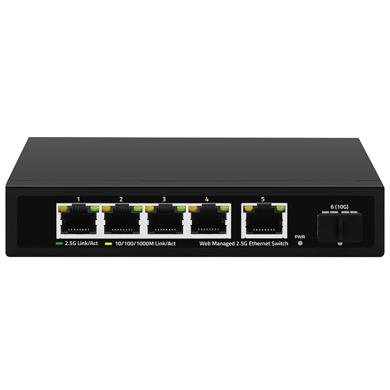 noise of small switches deployed in the office environment through the fanless silent design. This switch has 5* 100/1000/2500M RJ45 ports and 1* 10G SFP+ port,